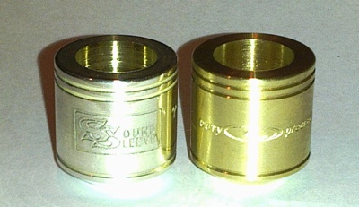 The Monster sleeve (far right) gives the ultimate in slot-lock and center. The inner dimensions of this monster sleeve fit the exterior of the Curry standard blank exactly! No set-screw needed. For Curry standard trumpet blank only.
